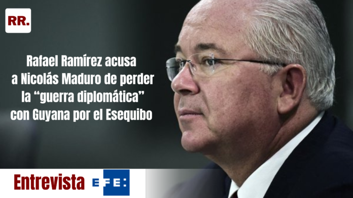 El exministro de Petróleo de Venezuela Rafael Ramírez denuncia que el gobierno de Maduro ha dejado pasar demasiado tiempo sin reaccionar a las licencias de petróleo concedidas por Guyana en aguas del Esequibo y califica de «puro bluf» el reciente referendo sobre ese territorio en disputa que puede dejar un conflicto fronterizo candente para el futuro.