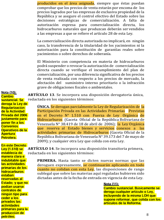 NOTAS SOBRE LA «LEY DE REFORMA PARCIAL DE LA LEY ORGÁNICA DE HIDORCARBUROS»